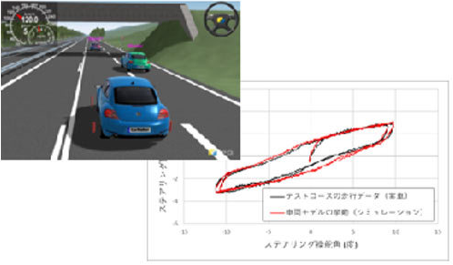 由于结合了测试路线的行驶数据的车辆模型能忠实地再现实车的动作,因此也可以用于以驾驶性能、驾驶稳定性(低g领域)、乘坐舒适度、NV等性能评价为目标的车辆开发。